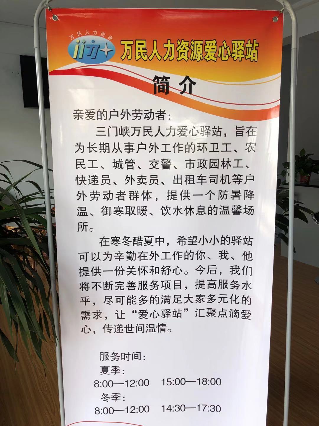 2019年10月10日,三門峽萬民人力資源有限公司愛心驛站在市、區(qū)兩級工會領導的幫助和指導下正式掛牌運行了!
